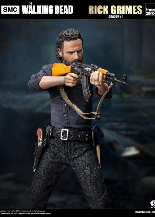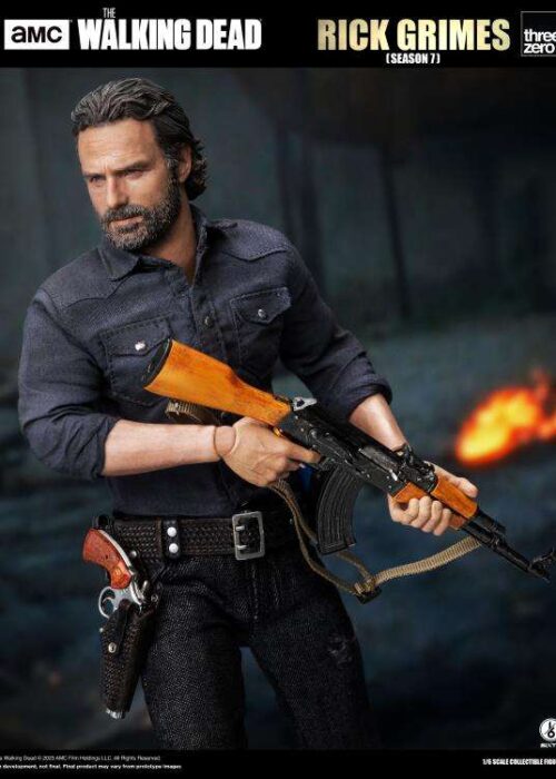 L’action figure da collezione 1/6 di Rick Grimes (Stagione 7) è alta circa 30,5 cm (12″) e presenta molteplici punti di articolazione ed una scultura realistica del volto. La lavorazione coglie perfettamente l’espressione del personaggio, come mostrato nella settima stagione di The Walking Dead. I capelli sono stati accuratamente disegnati con strati di vernice grigia e bianca per rappresentare l’aspetto invecchiato di Rick, mentre la camicia a maniche lunghe grigio scuro e i pantaloni neri sono stati “invecchiati” per aggiungere un aspetto post-apocalittico.