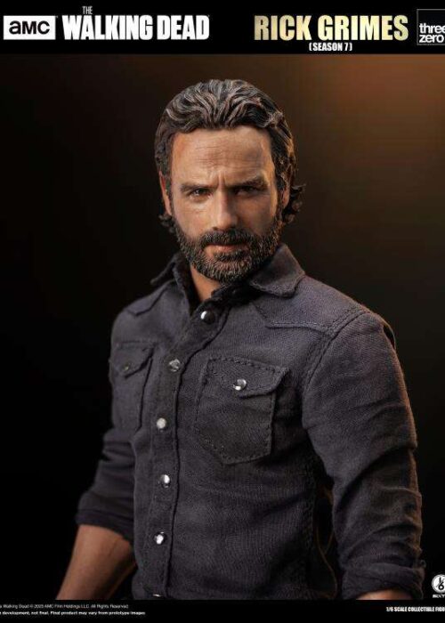 L’action figure da collezione 1/6 di Rick Grimes (Stagione 7) è alta circa 30,5 cm (12″) e presenta molteplici punti di articolazione ed una scultura realistica del volto. La lavorazione coglie perfettamente l’espressione del personaggio, come mostrato nella settima stagione di The Walking Dead. I capelli sono stati accuratamente disegnati con strati di vernice grigia e bianca per rappresentare l’aspetto invecchiato di Rick, mentre la camicia a maniche lunghe grigio scuro e i pantaloni neri sono stati “invecchiati” per aggiungere un aspetto post-apocalittico.
