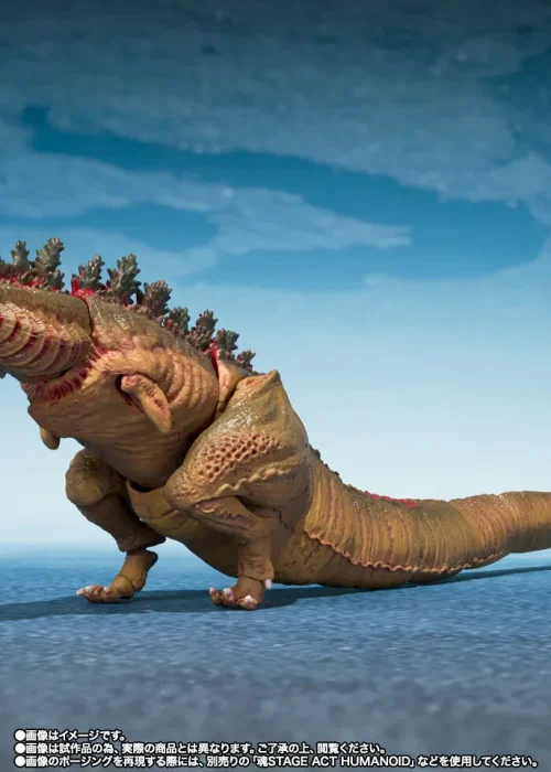 Al suo debutto nella linea S.H.MonsterArts, il Giant Unidentified Organism misura circa 16 cm di altezza e riproduce fedelmente la sua prima apparizione formato “figure”. Le parti trasparenti effetto spruzzo d’acqua alla base evocano l’effetto dell’acqua oceanica, mentre le applicazioni di colore rosso ricreano la celebre scena del mare che si tinge di rosso al momento dell’emersione. Ogni segmento della coda è articolato, permettendo di riprodurre con precisione i movimenti fluidi visti nel film.