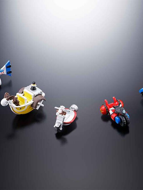 Dopo la Going Merry, anche la Thousand Sunny arriva nella serie Chogokin! Il modellino è alto 23 cm e lungo ben 38 cm ed è ricchissimo di dettagli. Grazie a dei pannelli removibili è possibile vedere anche l’interno. Il set include Shiro Mokuba 1, Mini Merry 2, Shark Submerge 3, Kurosai FR-U IV, Brachio Tank e altri accessori!