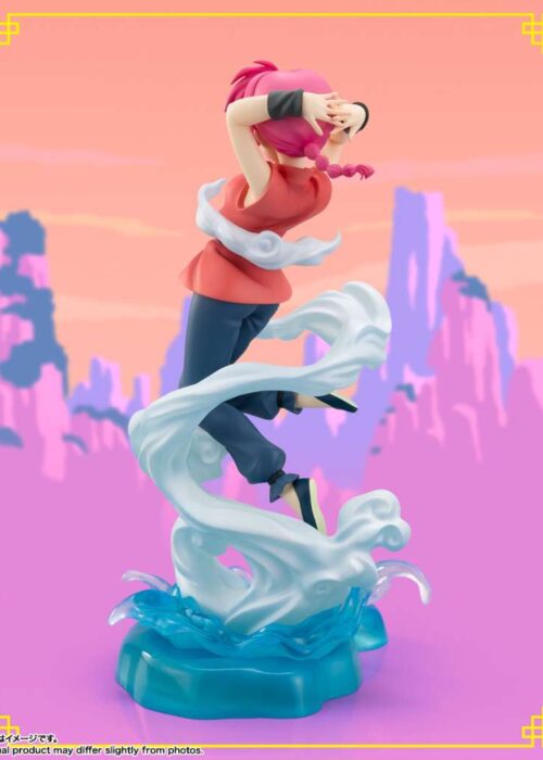 L’effetto molla è realizzato in materiale trasparente e la nebbia è creata con ombreggiature e colori più tridimensionali. L’espressione innocente e la posa di “Ranma” sono scolpite nei minimi dettagli!
