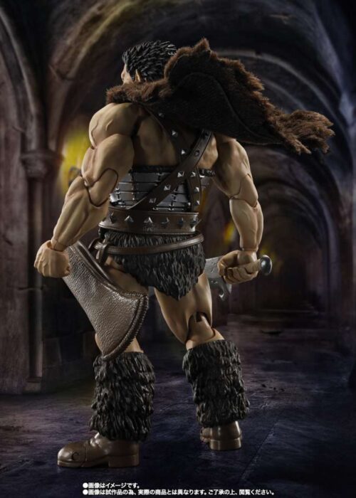 La figura arriva con un’altezza di circa 20cm, braccia, volti e mani intercambiabili, mantello in finta pelliccia, spada e ascia. Un pezzo che non puo’ mancare nella collezione di ogni fan della serie creata da Miura