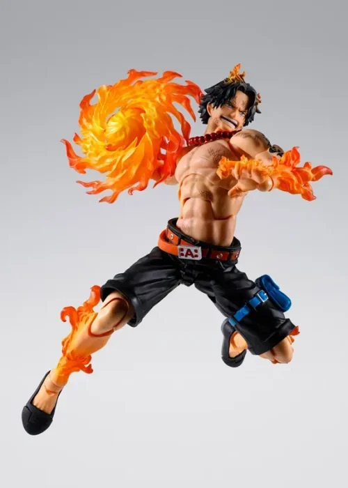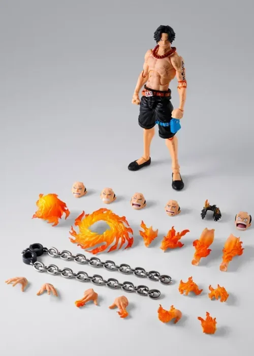 Grazie agli accessori inclusi, è possibile rappresentare sia momenti iconici come Ace in manette, sia le sue spettacolari tecniche basate sul potere del frutto Mera Mera.