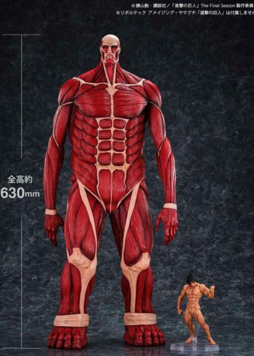 Kaiyodo è orgogliosa di presentare la nuova uscita della linea di figure Mega Sofvi: a dominare su tutte le altre arriva il Colossal Titan! Con un’altezza di quasi 63 cm, questa possente figure presenta dettagli incredibili, riprodotti fedelmente dall’anime di successo Attack on Titan, per un pezzo da collezione definitivo! Prepara il tuo equipaggiamento per effettuare il movimento tridimensionale ed affrontare questo colosso imponente: ordina subito la tua figure!