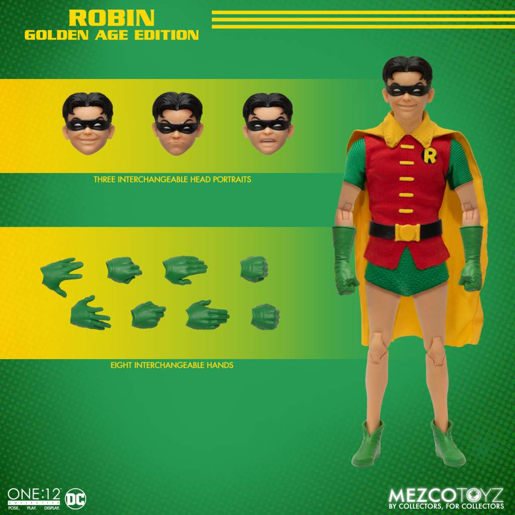 La nuova uscita della serie One: 12 Collective di Mezco Toys è dedicata a Robin in versione Golden Age! La figura indossa un dettagliato costume in vera stoffa, con utility belt e mantello. Nella scatola troverete anche teste e mani intercambiabili, stand display a tema e molto altro ancora!