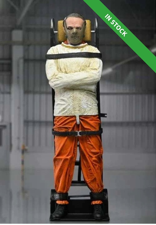 Interpretato dal premio Oscar Anthony Hopkins, il brillante e psicotico dottore de Il silenzio degli innocenti indossa la sua uniforme carceraria arancione e la camicia di forza.Questa agghiacciante figura in scala 7” di NECA è articolata per la posa ed è dotata di teste intercambiabili, della sua maschera caratteristica e della barella per il trasporto.