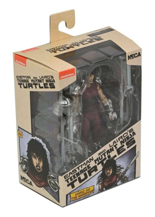 Basato sulla prima ed originale serie di comic book edita da Mirage comics in USA (la saga originale di Kevin Eastman e Peter Laird) , arriva questa nuova figura dedicata a Karai come apparso nelle storie a fumetti della saga “City at War”. Come sempre: grande qualità, accessori a gogo, super-posizionabilità ed esclusivo box con disegni di Eastman…il tutto garantito da NECA.