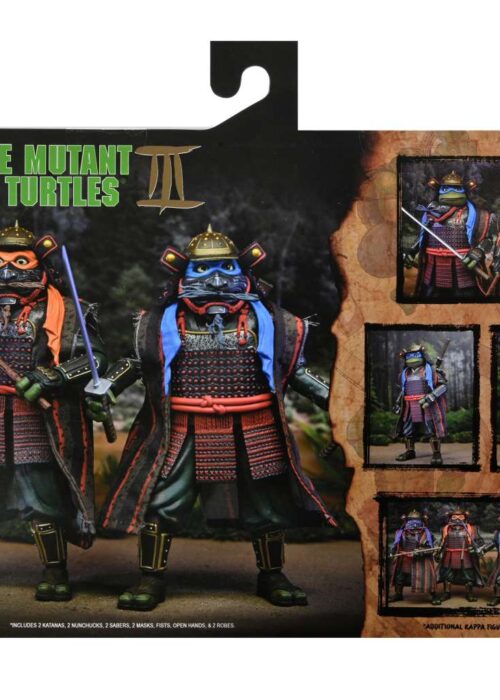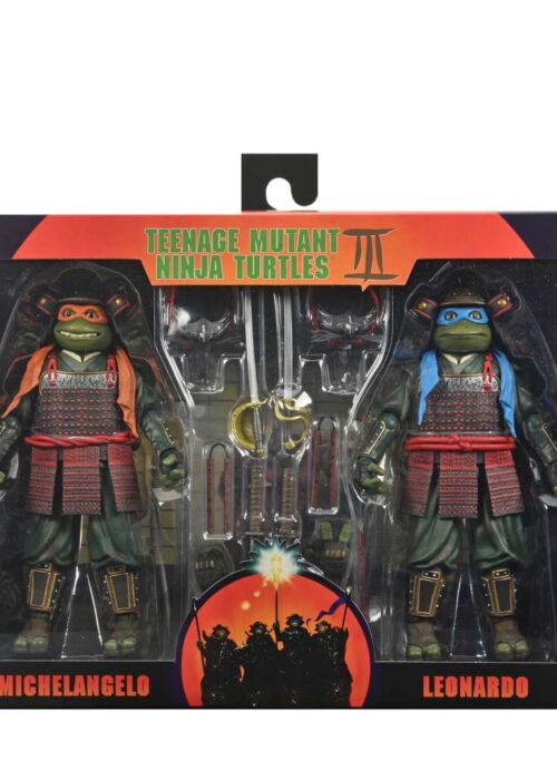 Dal terzo film della saga delle Tartarughe Ninja, ecco un 2-pack di Neca con le action figure di Leonardo e Michelangelo! Le figure sono alte circa 17 cm e sono dotate di articolazioni e accessori.