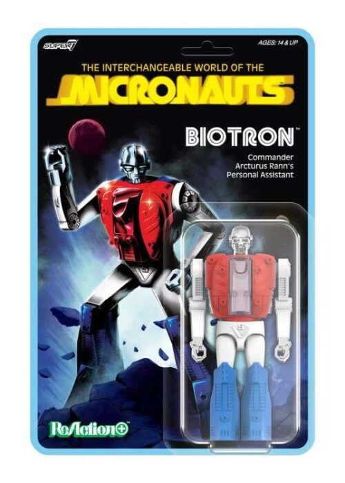 Ispirata al giocattolo vintage nela linea “Micronauti” degli anni ’70, questa figura di Biotron ReAction+ da 10cm è progettata per assomigliare al giocattolo originale e presenta una struttura O-Ring, con 12 punti di articolazione per la massima posabilità! Dotata di un accessorio treadpack e confezionata in un blister con retro in cartone, il destino del Microverso sarà letteralmente nelle vostre mani quando avrete questa figura di Biotron ReAction+!