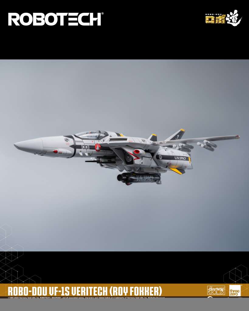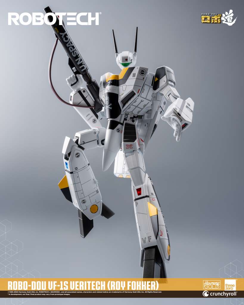 ROBO-DOU ROBOTECH VF-1S Veritech (Roy Fokker) è una figura da collezione progettata per catturare l’aspetto del veicolo apparso nella serie televisiva originale dell’anime, con un’attenzione estrema per i dettagli. Ogni figure è solida e al contempo super snodata. Il pezzo misura circa 20cm e puo’ assumere diversi look grazie alla sua trasformabilità: caccia da guerra, robot e Battloid. Il frame interno in lega di zinco offre un totale di 109 punti di articolazione con un’impressionante gamma di movimenti. Gli accessori includono il Gunpod GU-11, quattro set di missili e quattro paia di mani intercambiabili.