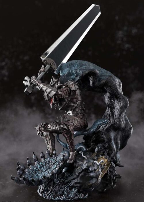 Guts con la sua armatura in versione Berserker, dall’omonimo capolavoro dark fantasy famoso in tutto il mondo, fa ora parte della linea “Figuarts Zero Touche Metallique” di Bandai! Ryu Oyama, artista famoso per le sue sculture, ha scolpito Guts in una forma spettacolare, come si vede nella Battaglia del Dio del Mare! La grande spada Ammazzadraghi è parzialmente metallizzata per un bagliore deciso ed i tentacoli del Dio del Mare sono incredibilmente dettagliati!