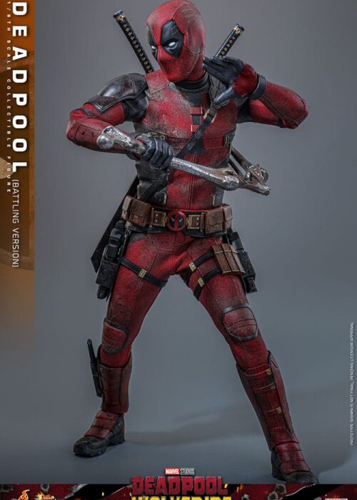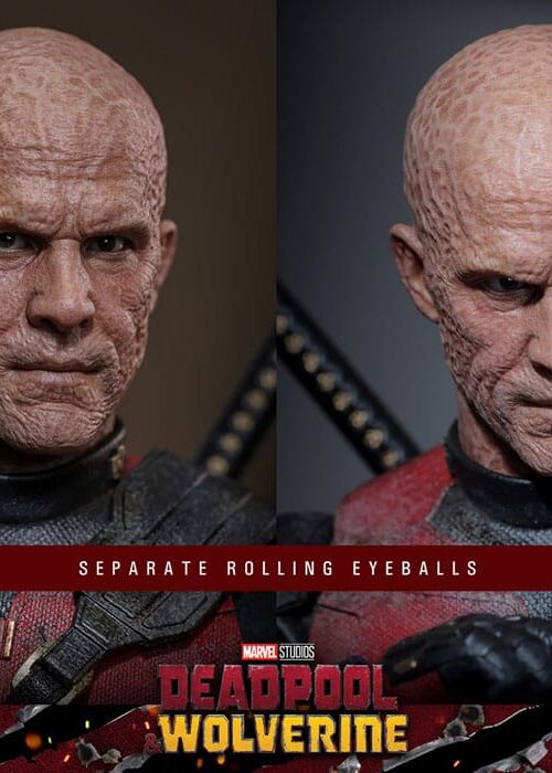 Come fedele ricreazione dell’aspetto di Deadpool di Ryan Reynolds, la tanto attesa action figure di Deadpool in scala 1/6 presenta una scultura della testa di Deadpool altamente dettagliata con bulbi oculari rotanti separati, una testa parzialmente mascherata e una scultura della testa completamente mascherata. I tre stili di scultura della testa consentono ai collezionisti di esporre diverse rappresentazioni autentiche di Deadpool nel film. Inoltre, sulla base della scena di apertura virale di Deadpool, la figura viene fornita con una serie di ossa di Wolverine e un paio di mani extra di Deadpool con artigli con cui i fan possono posare. Questa versione da battaglia di Deadpool presenta in particolare una tuta danneggiata dalla battaglia con dettagliati effetti atmosferici e include le sue armi distintive come katane, pugnali e pistole, oltre a una base di figure diorama a tema Time Door.