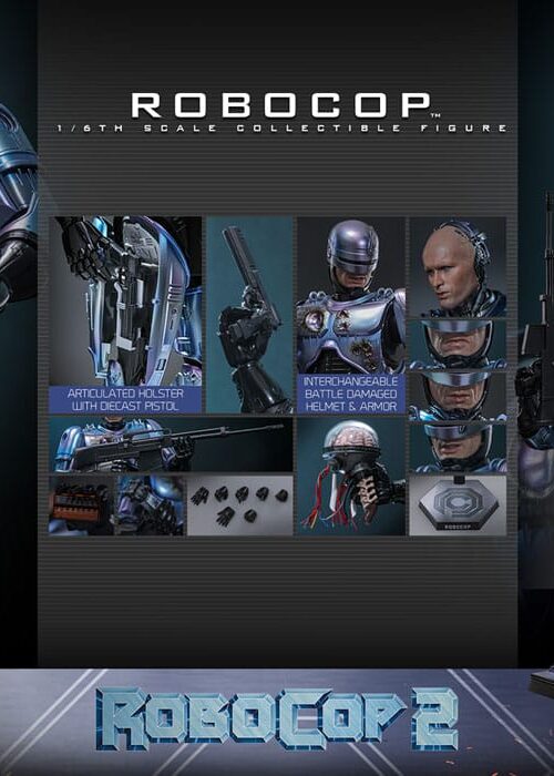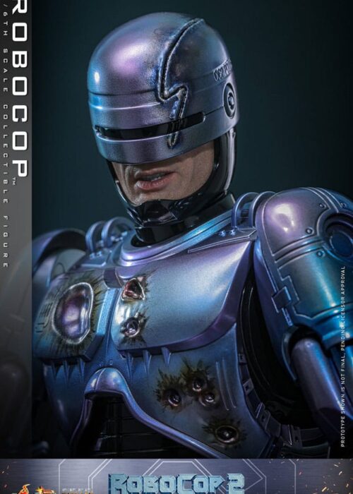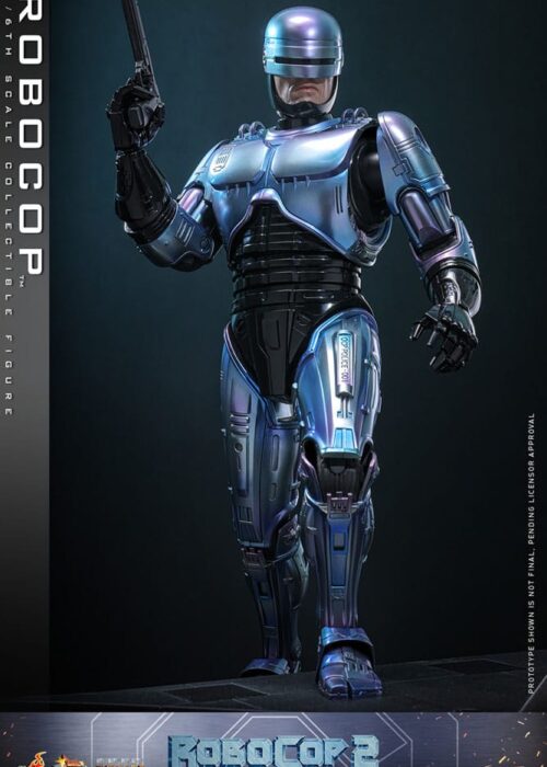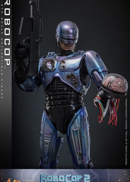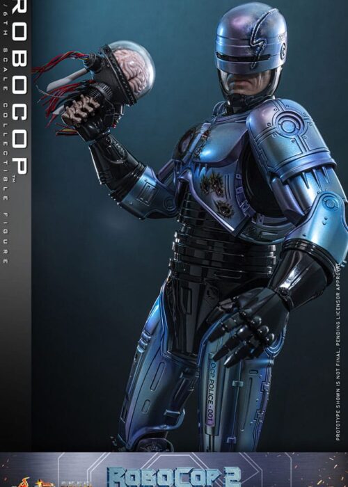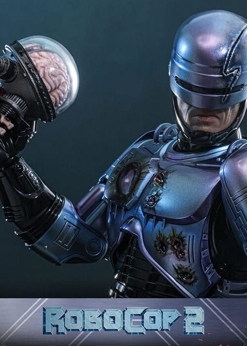Sideshow e Hot Toys sono entusiasti di presentare la figura da collezione in scala sesta di RoboCop 2, portando in vita questo iconico ufficiale di polizia cyborg. La figura d’azione presenta una testa con casco e volti inferiori intercambiabili che catturano le espressioni facciali di RoboCop, oltre a un nuovo scultore della testa con dettagli meccanici intricati. Vanta un’armatura blu e viola metallica iridescente, meticolosamente realizzata, con dettagli neri, insieme a un casco e un’armatura toracica danneggiati intercambiabili, che permettono ai fan di ricreare un aspetto danneggiato da battaglia. L’armatura presenta anche un fondina cosciale funzionante. La figura viene fornita con mani intercambiabili, comprese una coppia di mani articolate, pugni, mani per impugnare armi e accessori, e una mano che indica, permettendo ai collezionisti di esporla in varie pose. Le armi e gli accessori includono un fucile, pistole, un set di fiale di Nuke, un contenitore di Nuke e il cervello di Cain con colonna vertebrale cervicale. Viene fornita anche con un supporto per la figura.