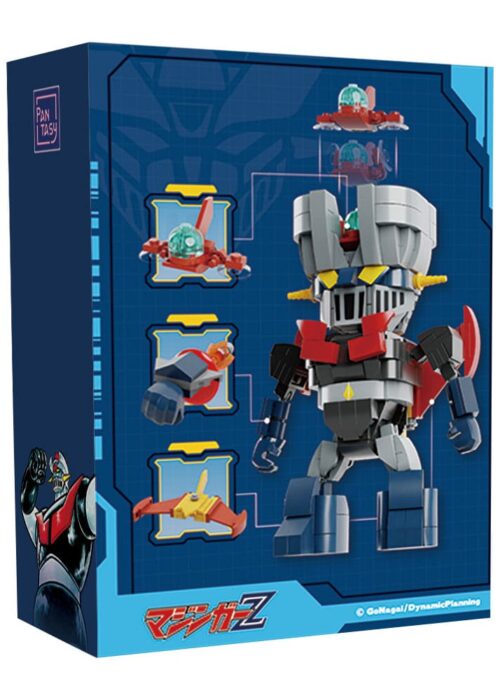 Pantasy presenta il set di costruzioni Mazinger Z Mini . Una volta assemblato misura 14,8 x 10 x 8 cm e si ispira all’aspetto del robot creato da Go Nagai. Il set è composto da 248 pezzi, il tempo stimato per il montaggio è di circa 40 minuti e viene fornito con un manuale di istruzioni. Set consigliato per bambini dai 6 anni in su.