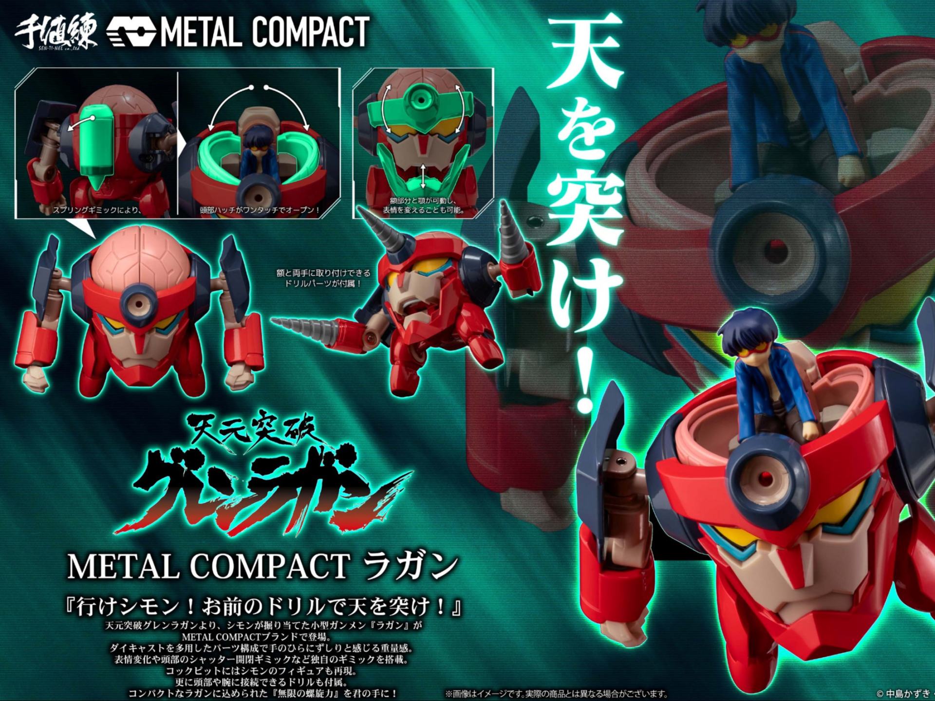 Lagann, il piccolo Gunmen dissotterrato da Simon nella serie animata Gurren Lagann, viene ora lanciato nella linea di figure METAL COMPACT.