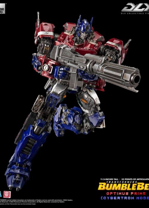 Alto circa 28,5 cm, Transformers: Bumblebee DLX Optimus Prime (Modalità Cybertron) è completamente articolato con circa 53 punti di articolazione e dispone di parti in metallo pressofuso e di una struttura in plastica, che consente un’ampia gamma di pose dinamiche, durata eccellente e stabilità. Il design dell’armatura non rimovibile di questa figura raffigura la forma cybertroniana di Optimus Prime con applicazione della vernice invecchiata tipica di Threezero, per replicare l’aspetto di Optimus Prime visto nel film.