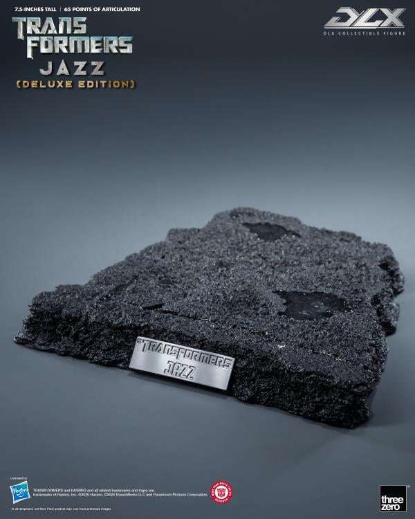 Dal film live-action Transformers (2007), Jazz – il secondo in comando di Optimus Prime – debutta nella serie DLX di threezero! Meticolosamente realizzata dal nuovo team di ricerca e sviluppo threezero, questa figure rimane fedele al design del film, offrendo al contempo un’eccellente qualità tattile e un’elevata giocabilità per questo leggendario personaggio.