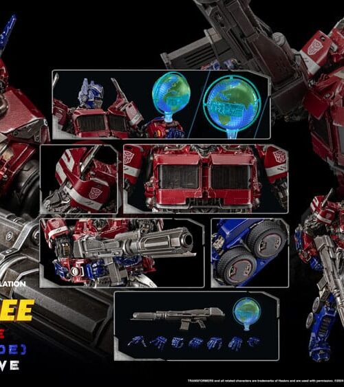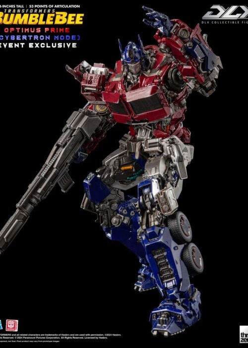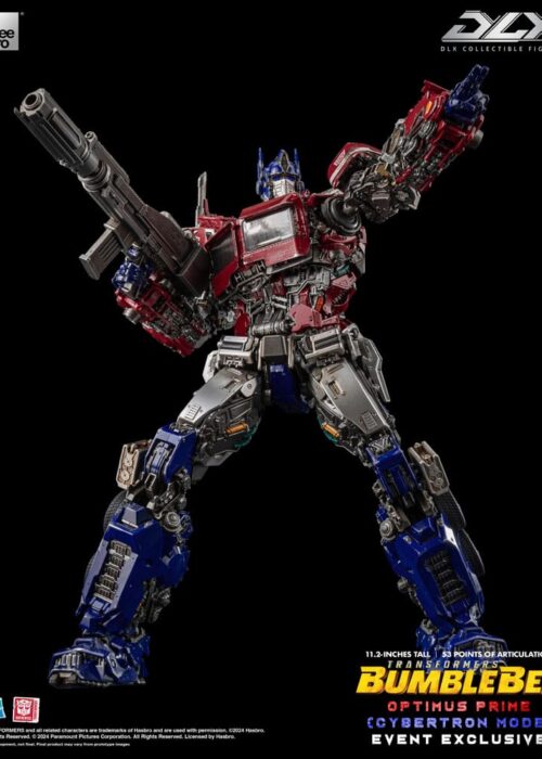 Alto circa 11,2 pollici (~28,5 cm), Transformers: Bumblebee DLX Optimus Prime (Modalità Cybertron) è completamente articolato con circa 53 punti di articolazione e presenta parti in metallo die-cast e un telaio in plastica di grado ingegneristico, che consente una vasta gamma di pose dinamiche, durabilità ed eccellente stabilità. Il design dell’armatura non rimovibile di questa figura rappresenta la forma cybertroniana di Optimus Prime. DLX Optimus Prime (Modalità Cybertron) presenta una scultura dettagliata e l’applicazione di vernice invecchiata distintiva di threezero per replicare l’aspetto di Optimus Prime come visto nel film. DLX Optimus Prime (Modalità Cybertron) mostra una notevole attenzione ai dettagli. I suoi occhi sono dotati di effetti luminosi a LED (richiede batterie AG13 x 2, batterie non incluse), dando vita alla figura. Gli accessori includono un Blaster Ionico e 5 set di mani intercambiabili (una mano di comando sinistra, pugni, mani rilassate, mani aperte e mani per impugnare armi).Quando abbinato al supporto per azione DLX, è in grado di assumere una grande varietà di pose iconiche.