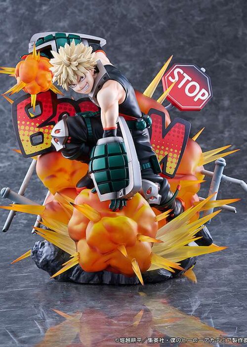 Bellissima statua in scala 1/7 di Katsuki Bakugo in vrsione Great Explosion Murder God Dynamight, da “My Hero Academia”. La statua è caratterizzata da una fantastica posa dinamica e da incredibili dettagli.