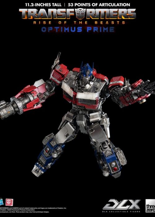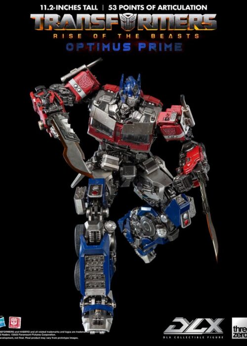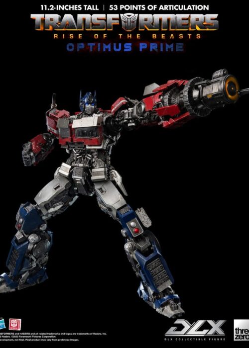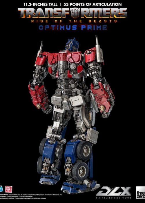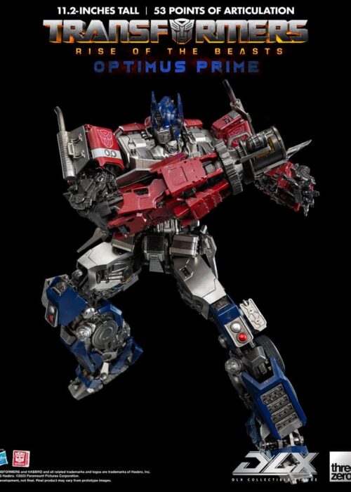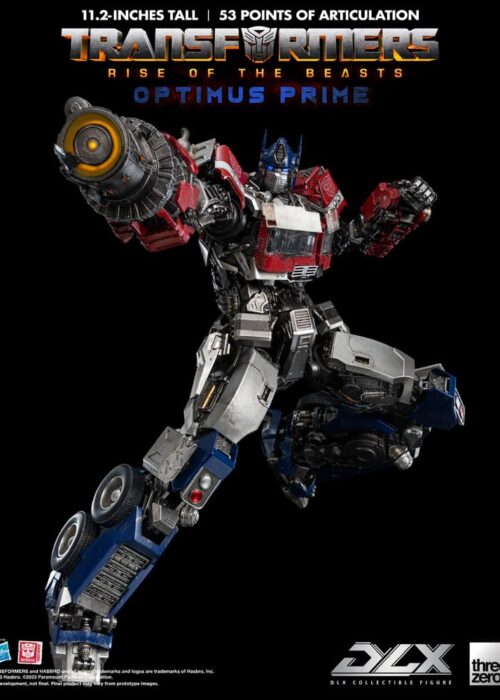 Il modello “Transformers: Rise of the Beasts” DLX Optimus Prime misura circa 30cm, con 53 punti di articolazione, e contiene un intricato scheletro in lega che fornisce ampie quantità di articolazioni.